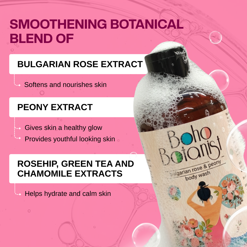 Boho Botanist Bulgarian Rose & Peony Body Wash (300ml)