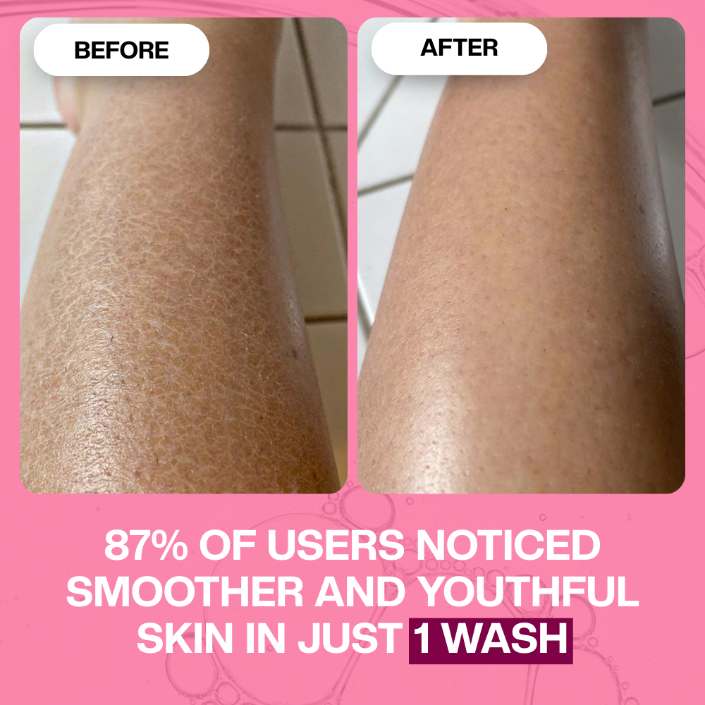 Step 1: Pour a coin-sized dollop of body wash onto your palm and lather generously on wet skin for a luxurious cleanse