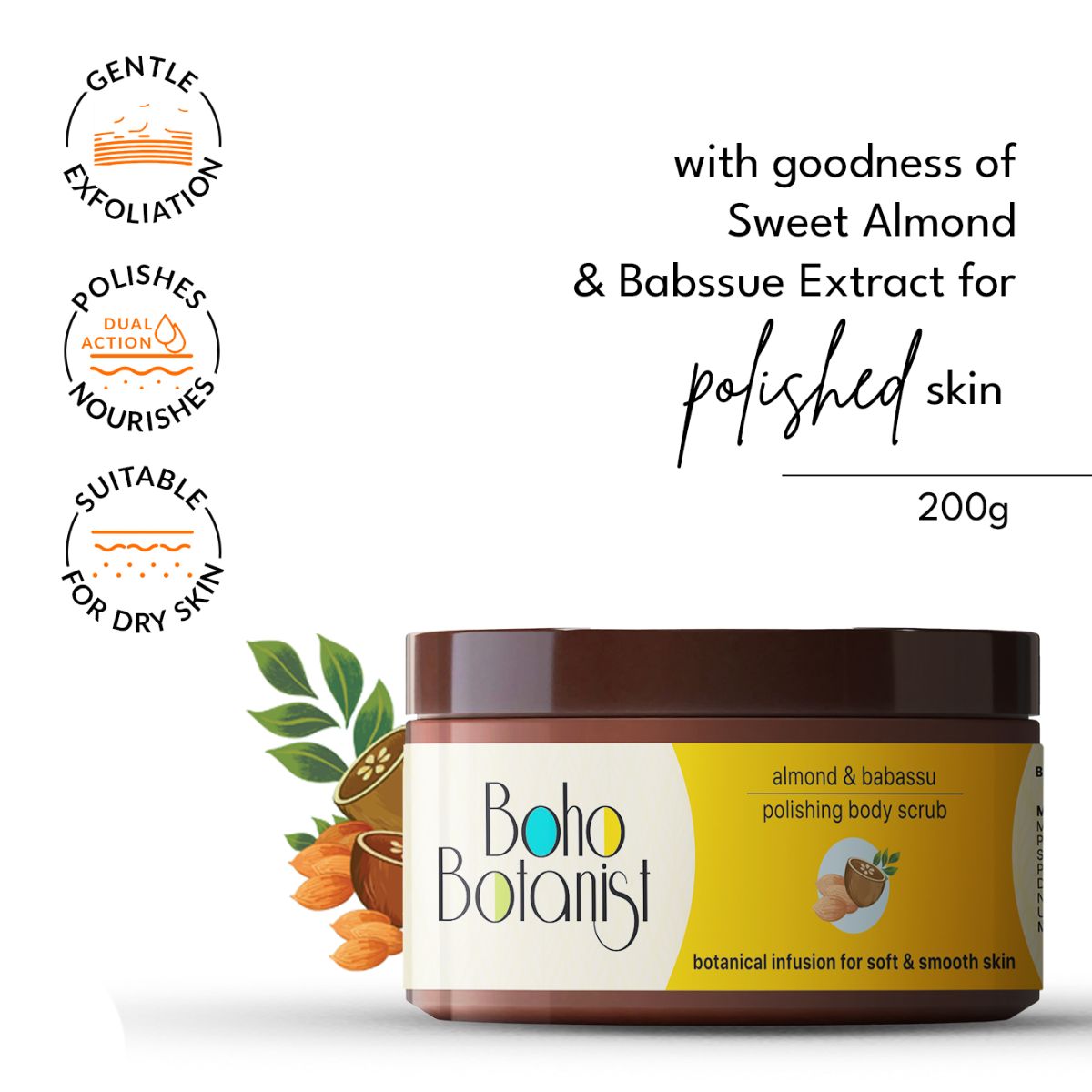 Transform dull, tired skin into a smooth, glowing texture with the Almond & Babassu Polishing Body Scrub. This luxurious exfoliator, enriched with the power of 8 botanical ingredients, gently buffs away dead skin cells, unclogs pores, and revives fatigued skin for a radiant, refreshed look.