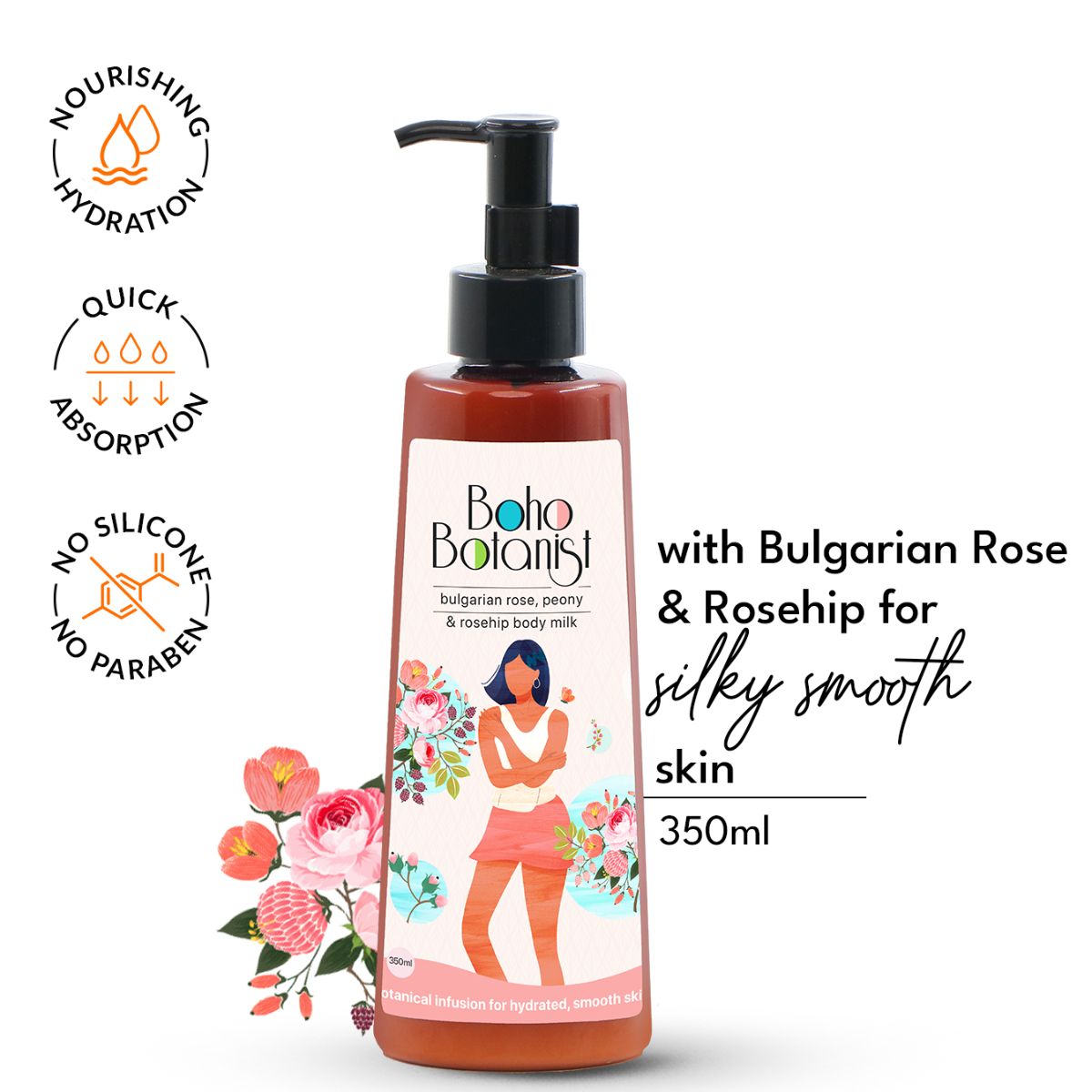 Indulge in premium body care with the Bulgarian Rose, Peony & Rosehip Body Milk, a lightweight yet deeply nourishing formula crafted with 8 botanical oils and plant-based extracts.
