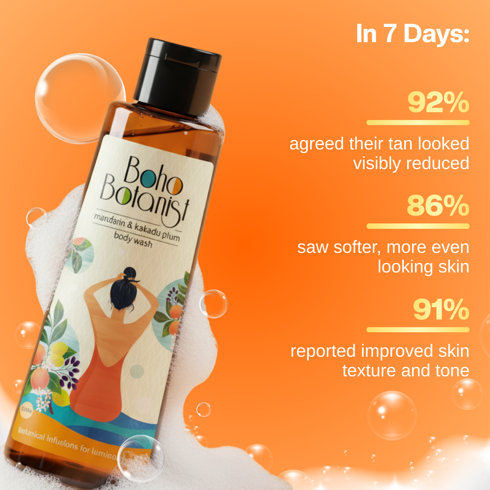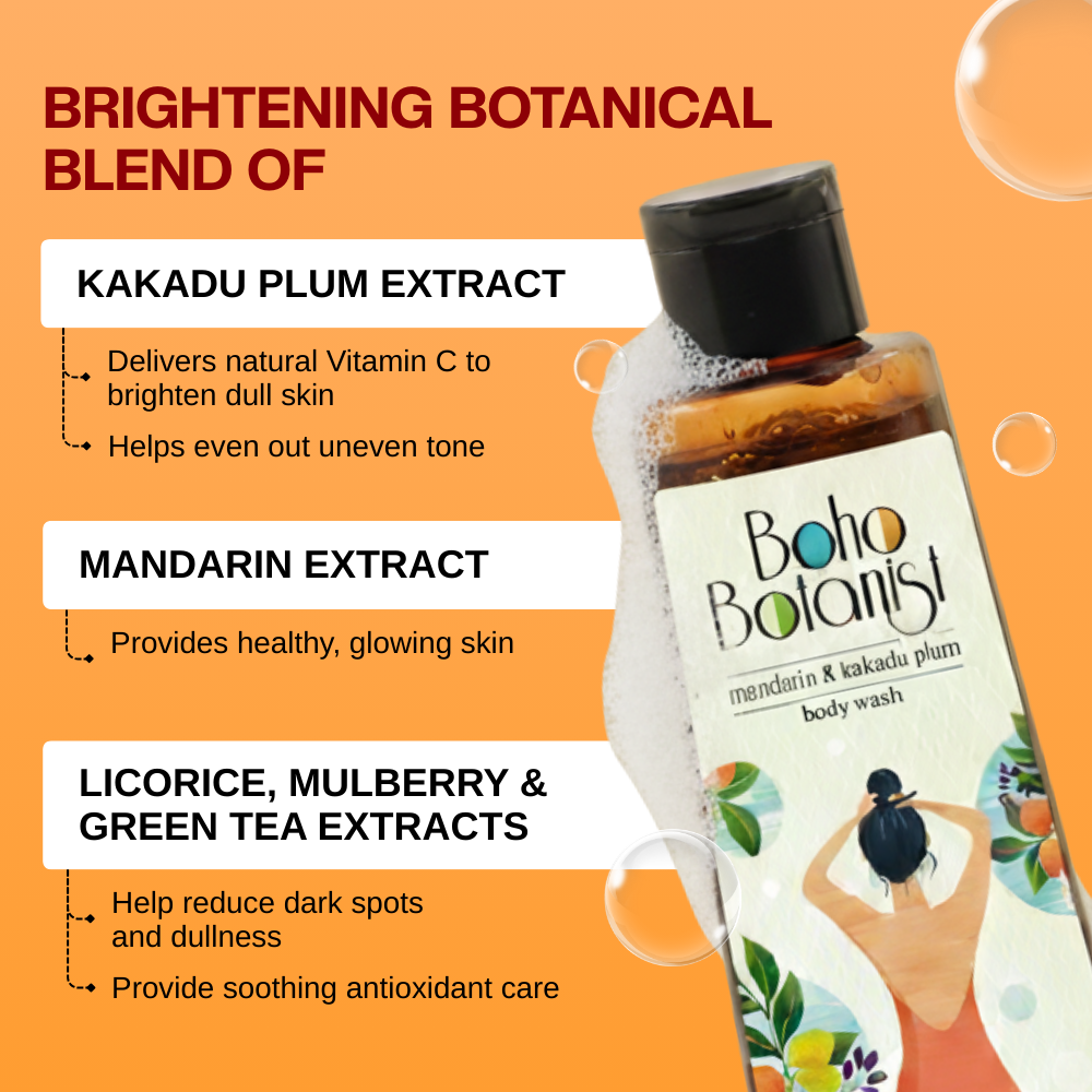 Start your day with a burst of brightness! The Mandarin & Kakadu Plum Body Wash is infused with 10 botanical oils and extracts, delivering the perfect balance of refreshing hydration and glow-boosting care.