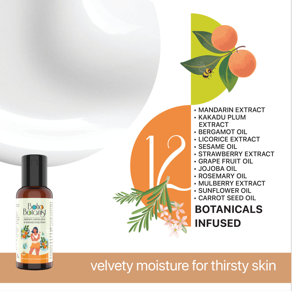 Aqua, Glycerin, Stearic Acid, Caprylic/Capric Triglyceride, C15-19 Alkane, Glyceryl Stearate (and) PEG-100 Stearate, Niacinamide, Citrus Nobilis (Mandarin) Fruit Extract, Glycerin (and) Water (and) erminalia Ferdinandiana (Kakadu) Fruit Extract, Rosmarinus Officinalis (Rosemary) Leaf Oil, Daucus Carota Sativa (Carrot) Seed Oil, Simmondsia Chinensis (Jojoba) Seed Oil, Sesamum Indicum (Sesame) Seed Oil, Helianthus Annuus (Sunflower)seed Oil, Glycerin (and) Aqua (and) Glycyrrhiza Glabra(Licorice) Root Extract, Citrus Aurantium Bergamia (Bergamot) Fruit Oil, Citrus Paradisi (Grapefruit) Oil, Fragaria Ananassa (Strawberry) Fruit Extract, Morus Alba (Mulberry) Fruit Extract, Tocopheryl Acetate, Saccharide Isomerate, Sodium PCA, Perfume, Polysorbate 20, Carbomer, Allantoin, Ethylhexylglycerin (and) Phenoxyethanol, Sodium Hydroxide, Disodium EDTA, BHT